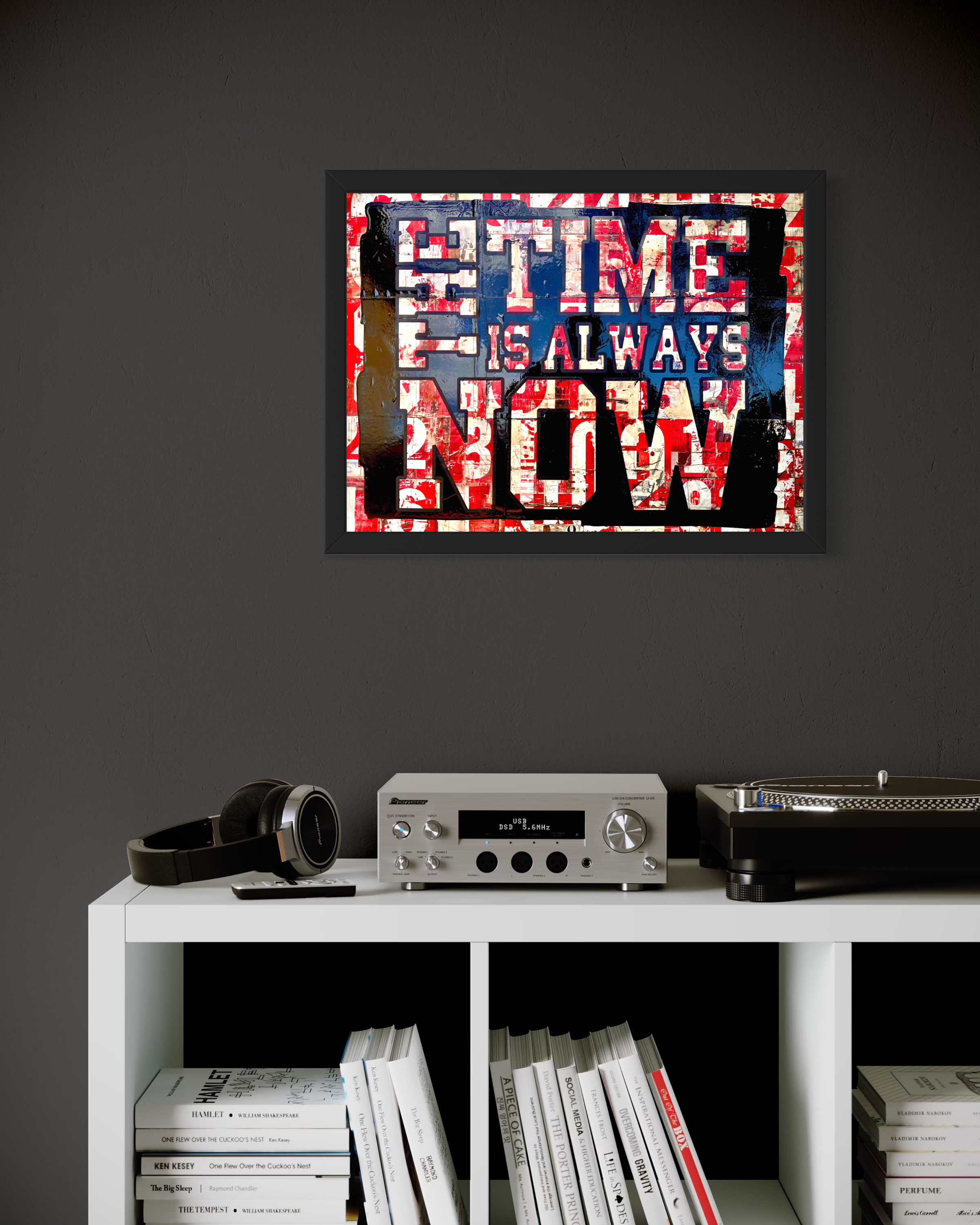 The Time Is Always Now stands as a powerful piece, capable of transforming the space through its graphic strength and conceptual resonance.